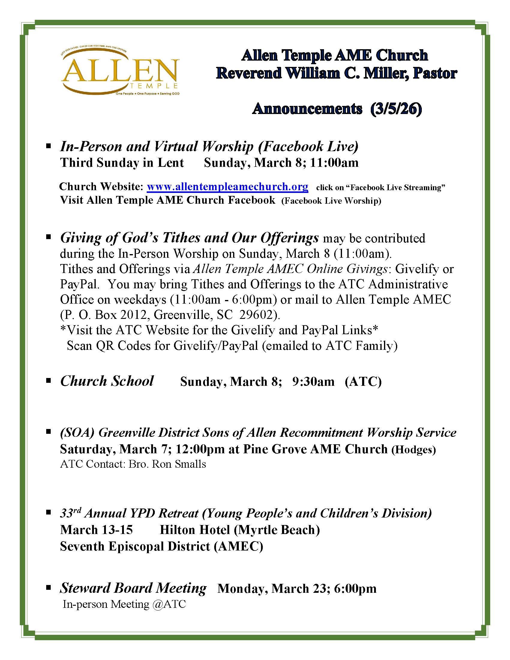 Keeping you up to date with community events and Sunday happenings!